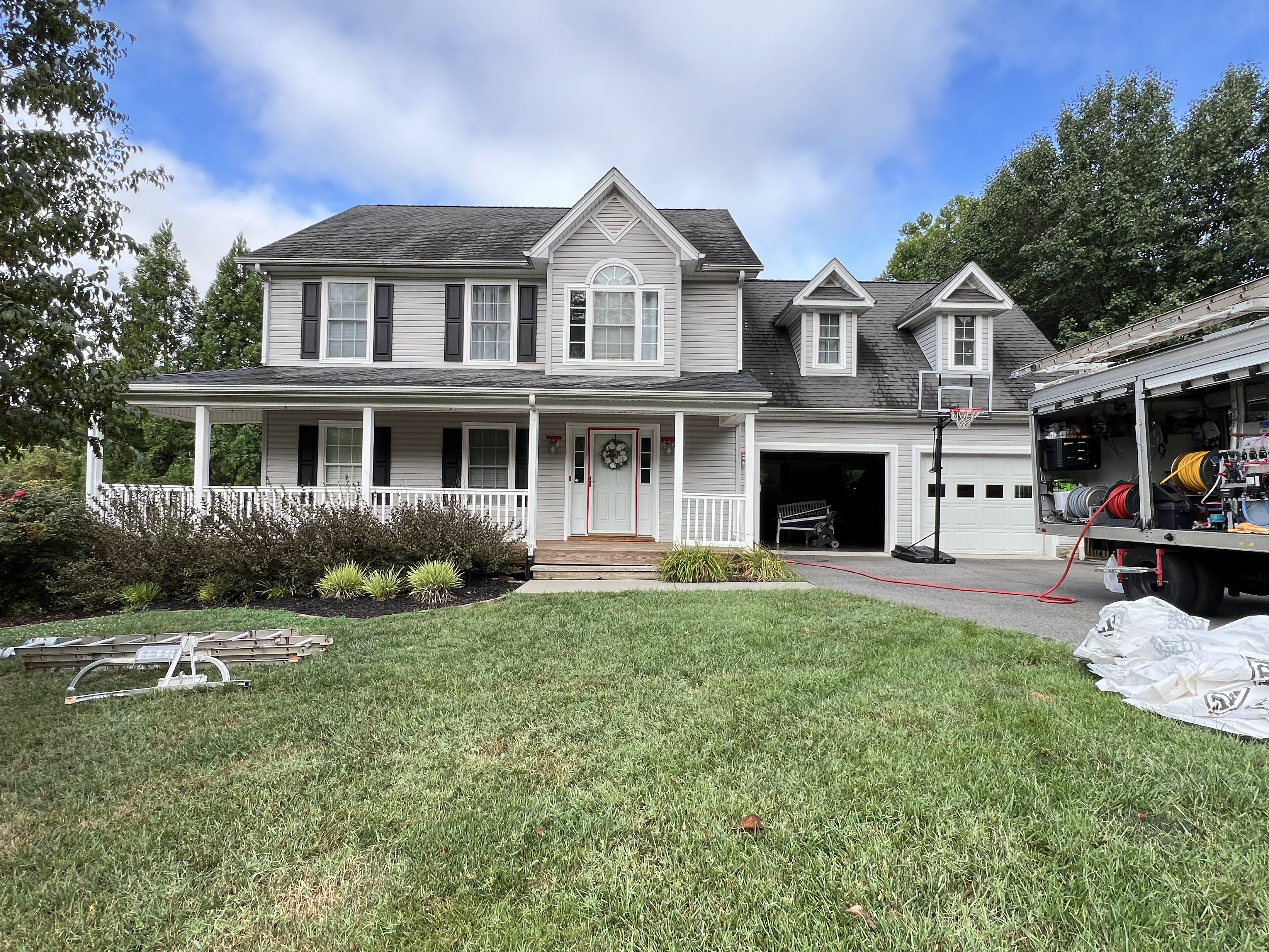 Humidity, shade, and lake conditions cause algae and mildew to grow fast. Our process is designed specifically for Virginia conditions.